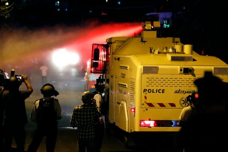 Red Crescent crews provided medical assistance for three local residents and transferred one of them to hospital after they were physically assaulted by police forces.
