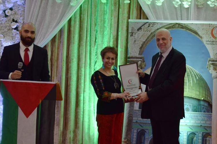 Dinner was presented from the Palestinian kitchen on the sidelines of the honoring of the attendees, who numbered more than 200 people, and listened to a speech from Dr. Raed Fathi, a teacher at the blessed Al-Aqsa Mosque, with beautiful lyrical links of the artist Abdel-Fattah Awinat and an outstanding performance of Dabkeh where Palestinian scarves were handed out to the attendees.
