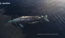 Rare drone footage shows grey whale calf drinking milk from mother