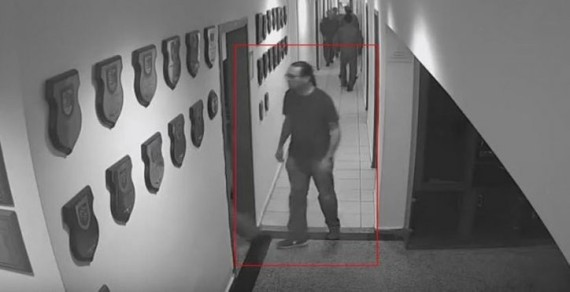 وفي الصور التي يظهرها الفيديو الذي رصدته كاميرات المراقبة، يسير الرجل في الممرات ويتحدث للجنود الذين يحيونه، ويدخل ويخرج من الغرفة التي يبدو أنه على معرفة جيدة بها.
