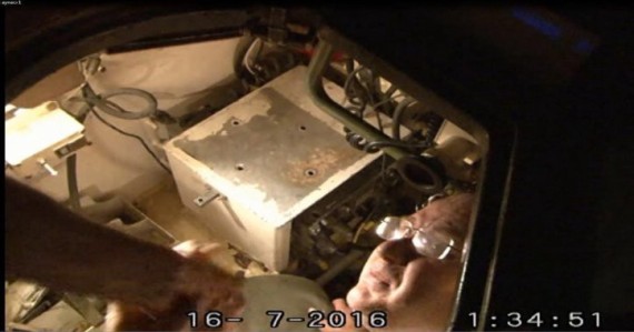 ووفقاً للتسجيلات التي تم الكشف عنها لاحقاً أثناء احتجاز أوكسوز، فقد ذهب الأخير إلى المرحاض، وبعد ذلك بقليل، دخل أحد أفراد قوات الجيش نفس دورة المياه التي استخدمها أوكسوز. وأثناء محاولة الجندي الحصول على منديل ورقي، أدرك وجود جهاز ما داخل علبة المناديل، وهو ما أبلغ به رؤساءه فوراً.