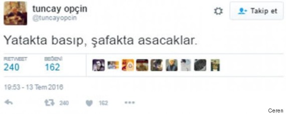 كان تونجاي أوبتشين صحفياً آخر عمل لصالح صحيفة بوغون ومجلة أكسيون التي تنتمي لغولن، سافر للخارج قبيل الانقلاب، وقبل يومين فقط من الانقلاب كتب التغريدة التالية
