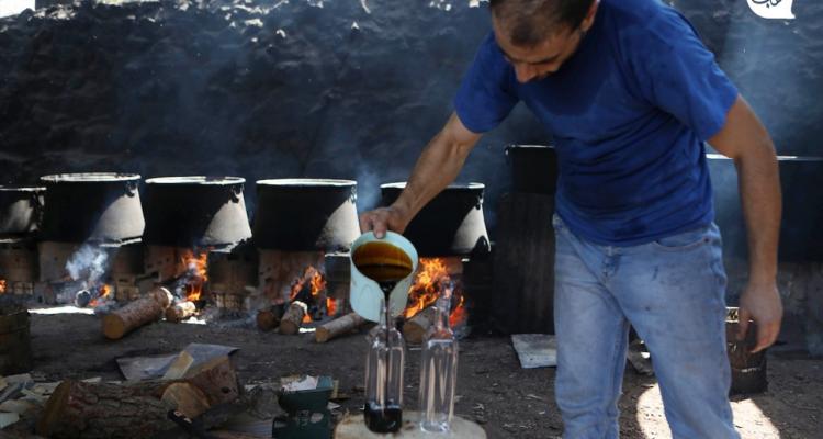 يحافظ الفلسطيني خالد عرفة (38 عاماً) على مهنته في صناعة "دبس العنب" بكميات كبيرة داخل فناء منزله في مدينة الخليل، استعداداً لبيعه في الأسواق المحلية.
