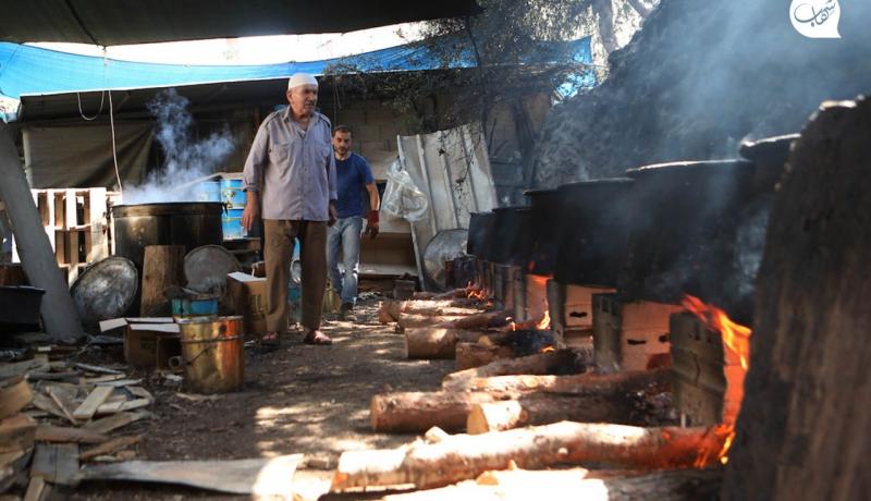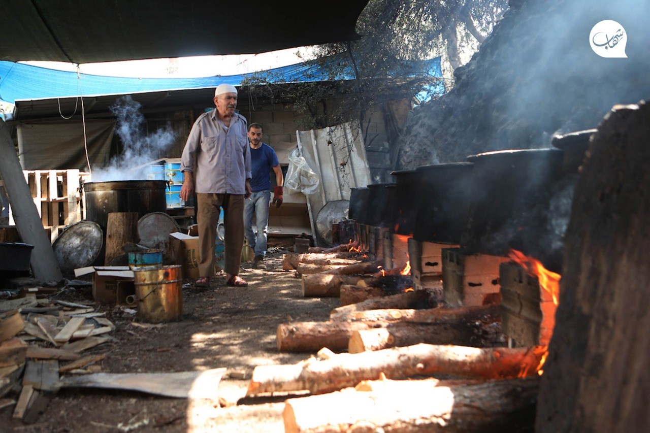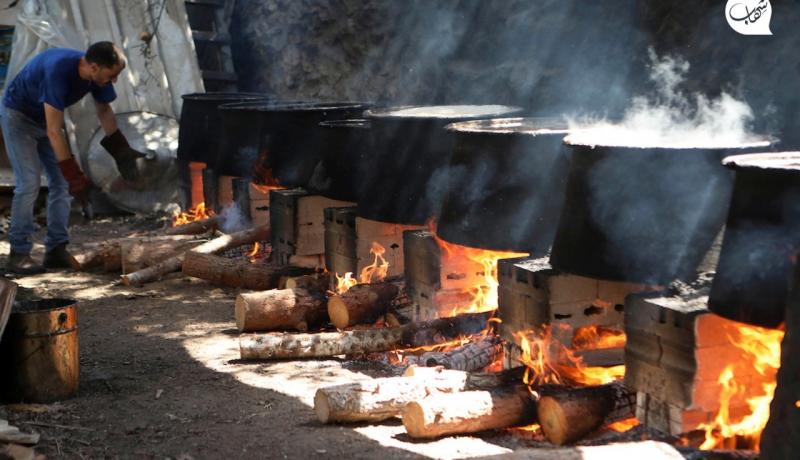 ويشرح طريقة إعداد "دبس العنب" التي يتبعها وفقاً للطريقة التقليدية، حيث يشعل النار بكميات كبيرة من الحطب، استعداداً لطهي العنب لمدة 12 ساعة كمرحلة أولى من مراحل صناعته بعد غسله وعصره وإضافة كميات مناسبة من السكر.