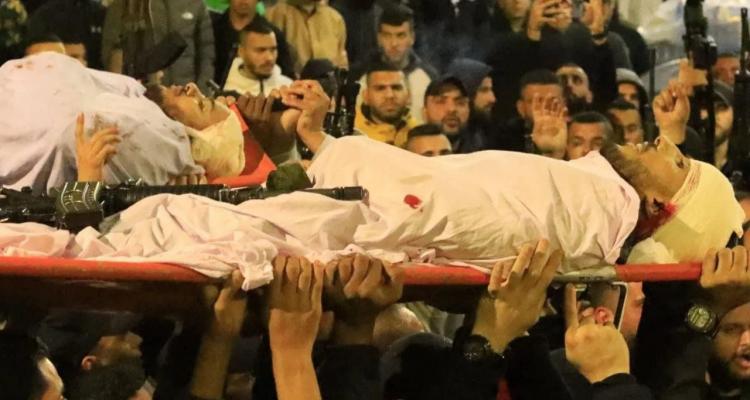 زفّت حركة المقاومة الإسلامية ( حماس ) إلى شعبنا الفلسطيني، القياديين في المقاومة الشهيد المجاهد محمد أيمن السعدي (26 عامًا)، والشهيد المجاهد نعيم جمال الزبيدي (27 عامًا)، اللذين ارتقيا في عملية اغتيال جبانة نفذتها قوة صهيونية خاصة في مخيم جنين فجر اليوم الخميس.