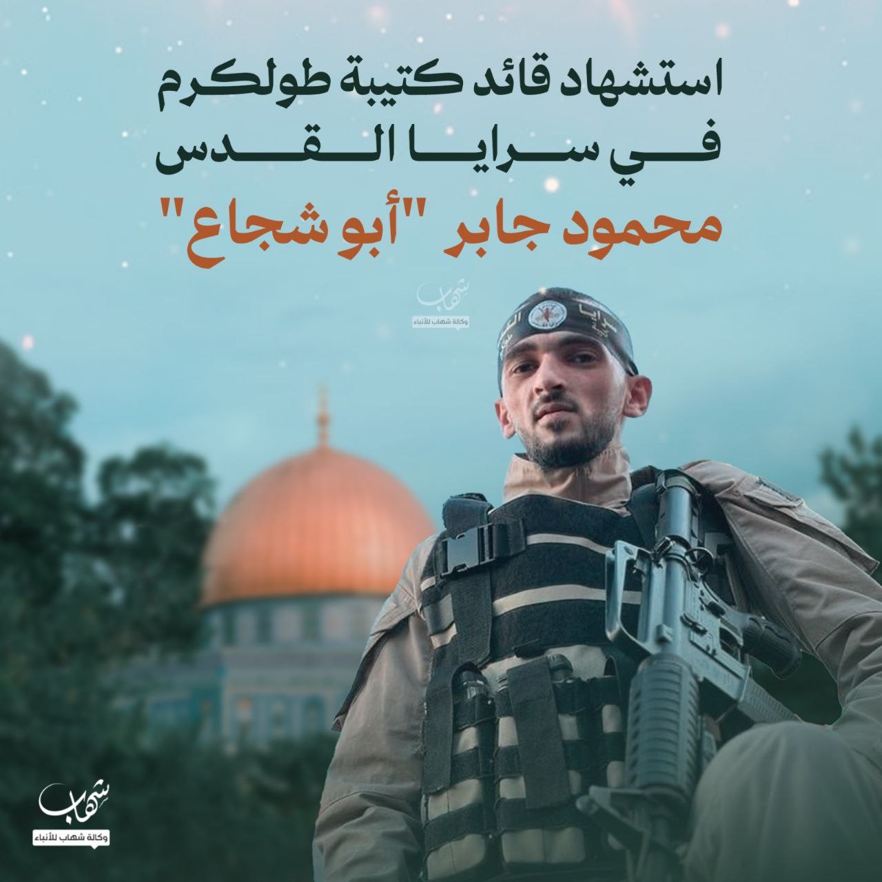 أعلنت حركة الجهاد الإسلامي، ارتقاء قائد كتيبة طولكرم التابعة لسرايا القدس وأحد مؤسسيها الأوائل محمد جابر "أبو شجاع" مع عدد من إخوانه بعد مواجهة بطولية مع جنود الاحتلال في مخيم نور شمس.