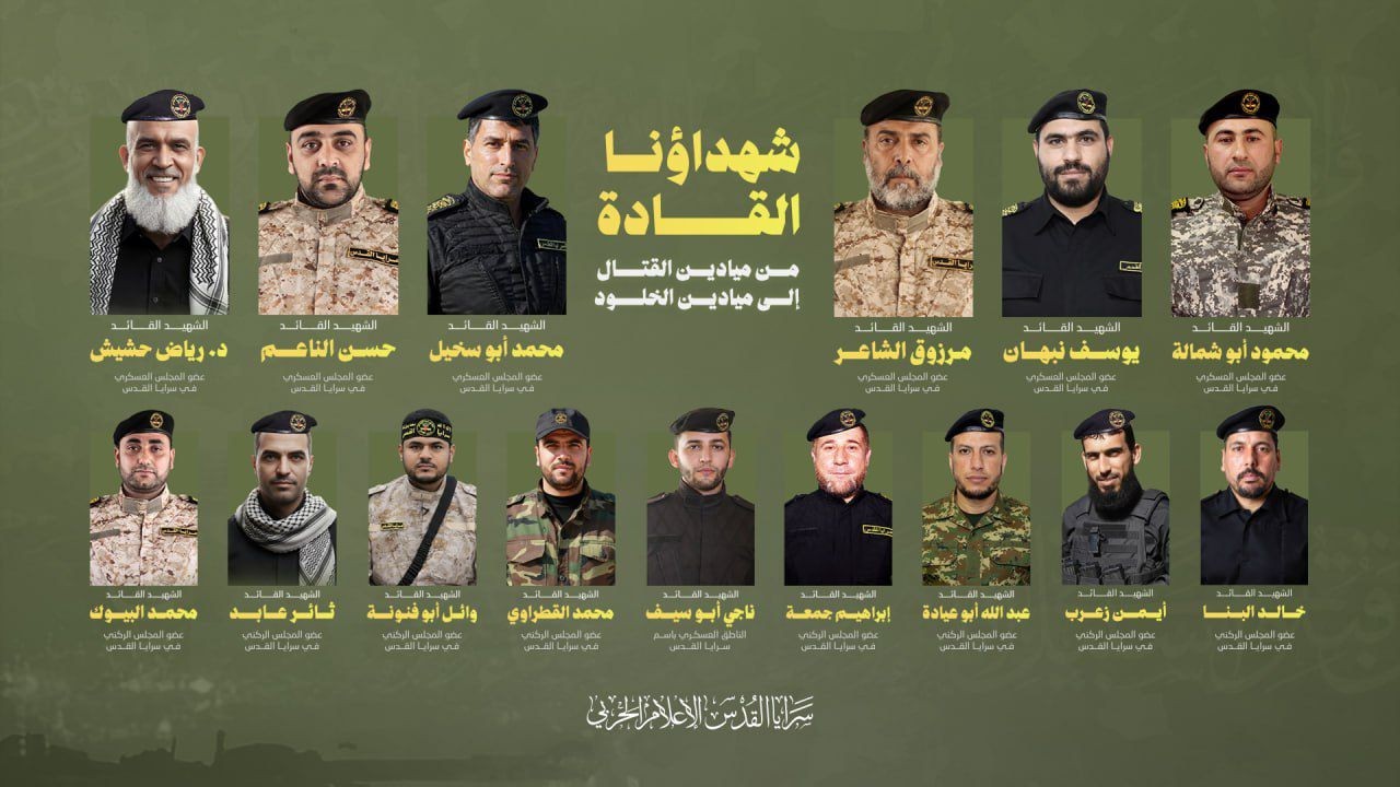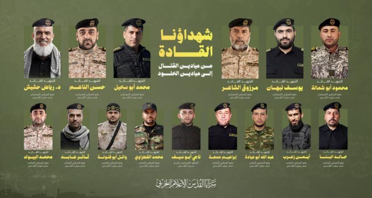 أعلنت سرايا القدس، الجناح العسكري لحركة الجهاد الإسلامي في فلسطين، استشهاد عدد من قادتها البارزين خلال الحرب الأخيرة، بينهم أعضاء المجلس الركني للسرايا، وذلك وفق ما أفاد به الناطق العسكري باسمها، أبو حمزة.