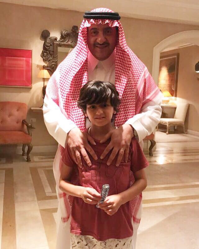 وبدا الأمير بن نايف مبتسما في الصورة، رفقة حفيده عبد الله بن سعود بن فهد.