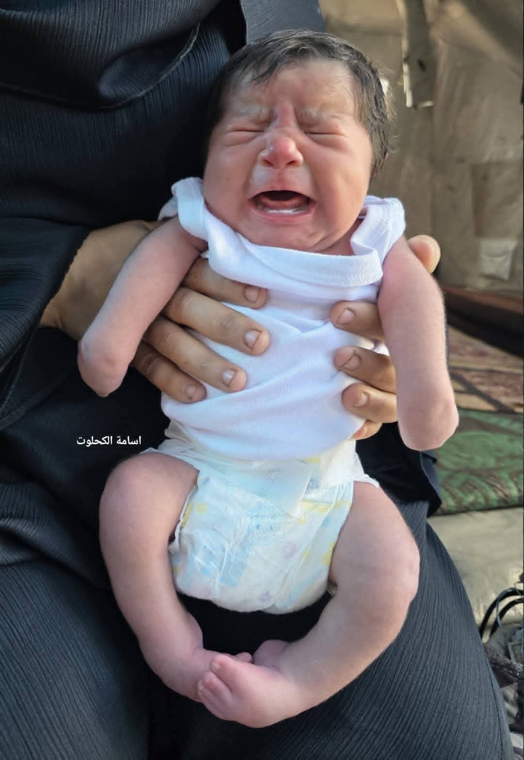 وتشير عائلتها إلى أن هذه الحالة جاءت بعد استنشاق والدتها دخان صواريخ أطلقتها قوات الجيش الإسرائيلي على مكان نزوحها بجانب المستشفى المعمداني في مدينة غزة، خلال فترة حمل وُصفت بالخطرة.