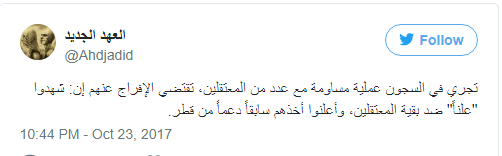 ولكن، بحسب "مجتهد" للحرية ثمنها، فرضته السلطات على عدد من علماء الدين والدعاة المعتقلين، دون تحديد أسمائهم، وهو أن "يشهدوا علناً ضد بقية المعتقلين، وأن يعلنوا أنهم أخذوا في وقت سابق دعماً من قطر".