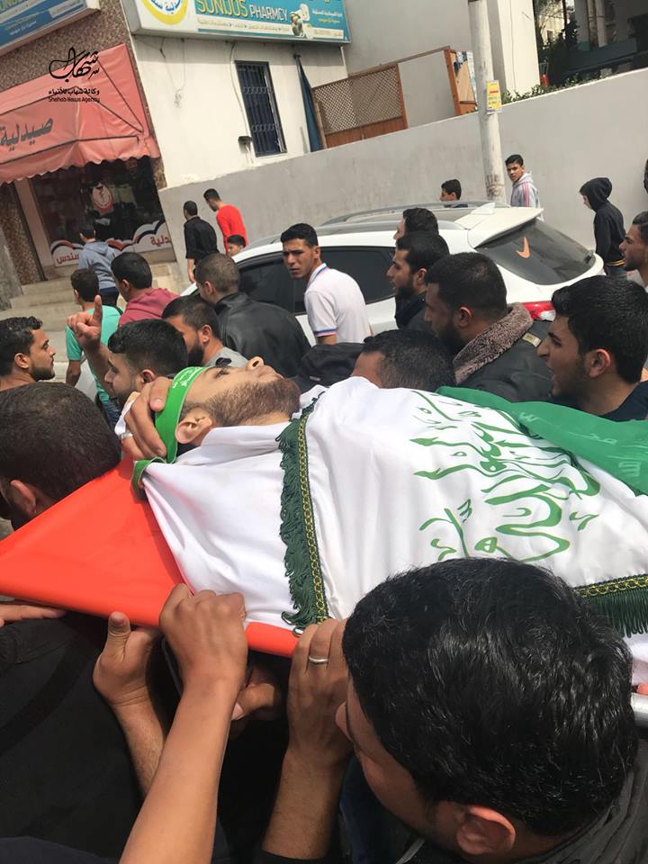 وانطلق موكب التشييع من منزل الشهيد في مدينةغزة، وأديت صلاة الجنازة على الجثمان في مسجد اليرموك، قبل ان يوارى الثرى في مقبرة الشهداء.
