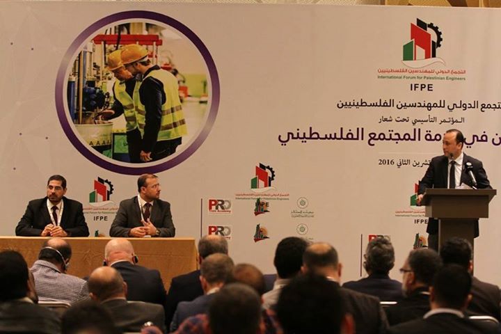 رئيس التجمع الدولي للمهندسين الفلسطينيين "إبراهيم أبو ثريا"، أكد أن تجمعهم يأتي للبناء ودعم الشعب الفلسطيني المظلوم، وأن تجمع المهندسين ليس بديلا عن أحد وأسس للعمل والإنجاز وبناء الوطن على طريق العودة، وأنه للجميع الفلسطيني ومنصة مهنية محترفة في العمل الهندسي الفلسطيني لأجل فلسطين وخدمة للمهندس الفلسطيني.