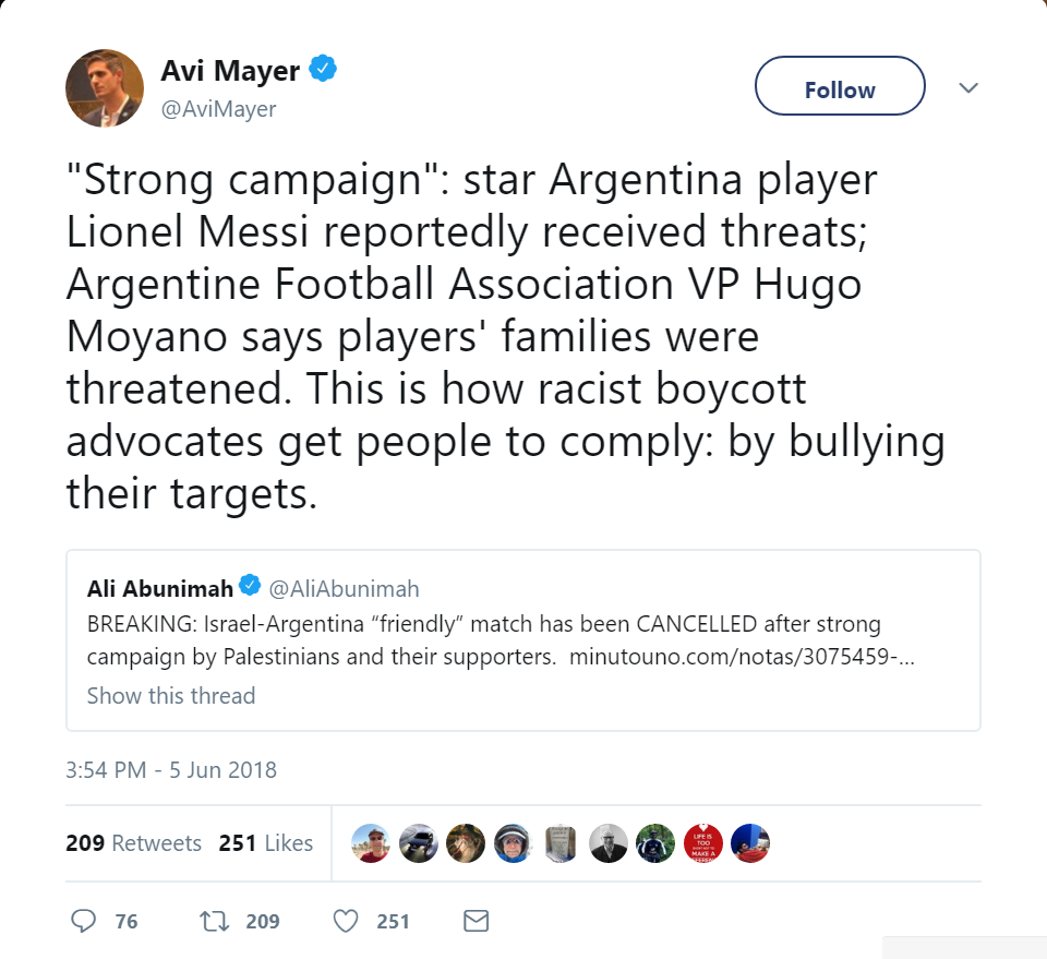 In an effort to spin a big defeat, Israel’s propaganda apparatus has begun spreading claims that Argentina players had received “threats.”