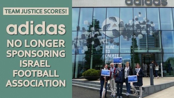 Following a global campaign with human rights supporters around the world asking the German sportswear manufacturer, Adidas, to stop its complicity in the oppression of Palestinian people who live under Israeli occupation, and with the ongoing colonization of their land in the occupied West Bank and East Jerusalem.