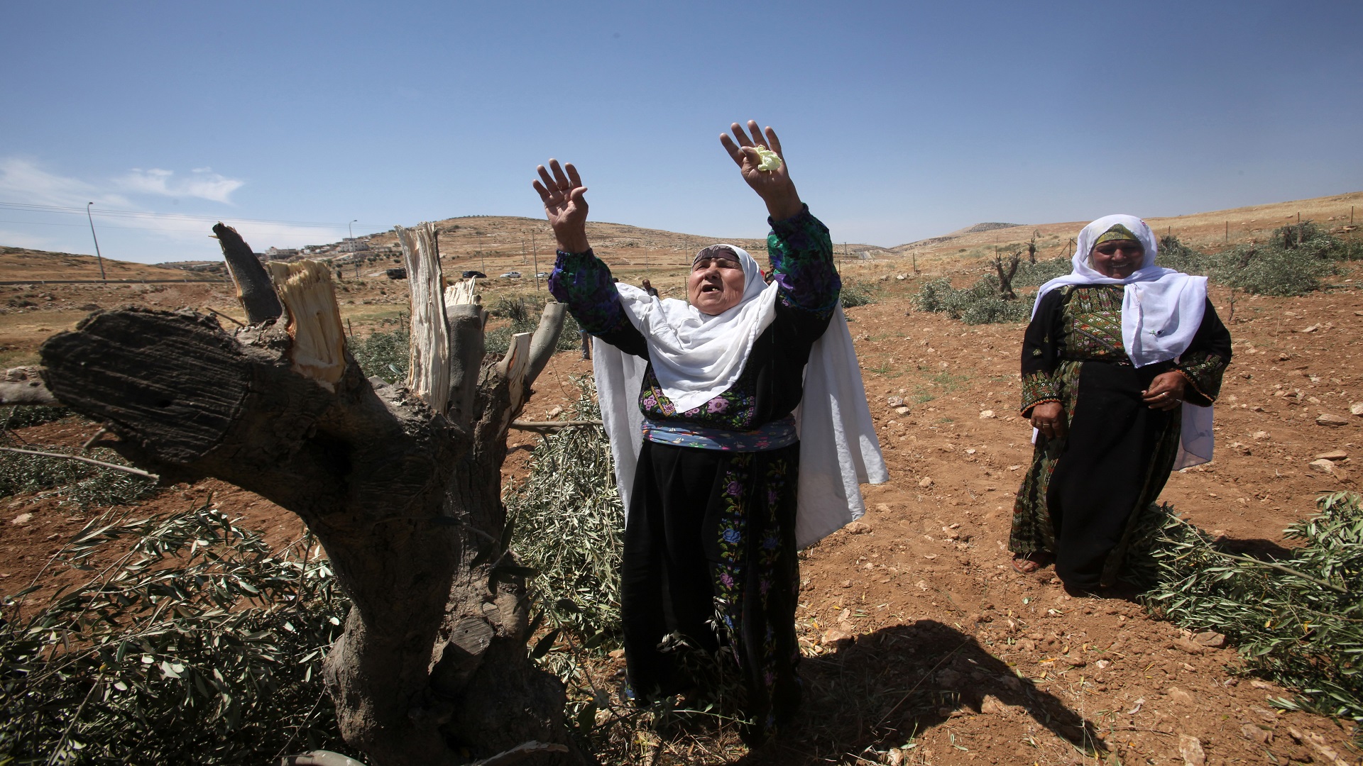 Hassan ‘Issa discovered that 168 out of 250 grapevines in his fields had been destroyed by settlers. “What happened to my vines feels like a terrible injustice, and I feel incredibly frustrated and sad.” It is painful to read this. Compare the vagueness of ‘Issa’s statement — made in the knowledge that there are no rights for the colonised in apartheid Israel — with the threat left by the settlers: “No to farmer terrorism.” The value of people and land is misplaced to set the accelerated pace for forced displacement and a re-enactment of the image of Palestine being barren, one of the false premises behind Palestine’s colonisation by Israel. The only difference is that Israel now prefers sustained acts of violence that are documented and discussed almost routinely.