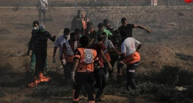 A number of Palestinian youths were injured when the Israeli occupation forces (IOF) opened fire at Palestinians demonstrating late on Saturday at Gaza border