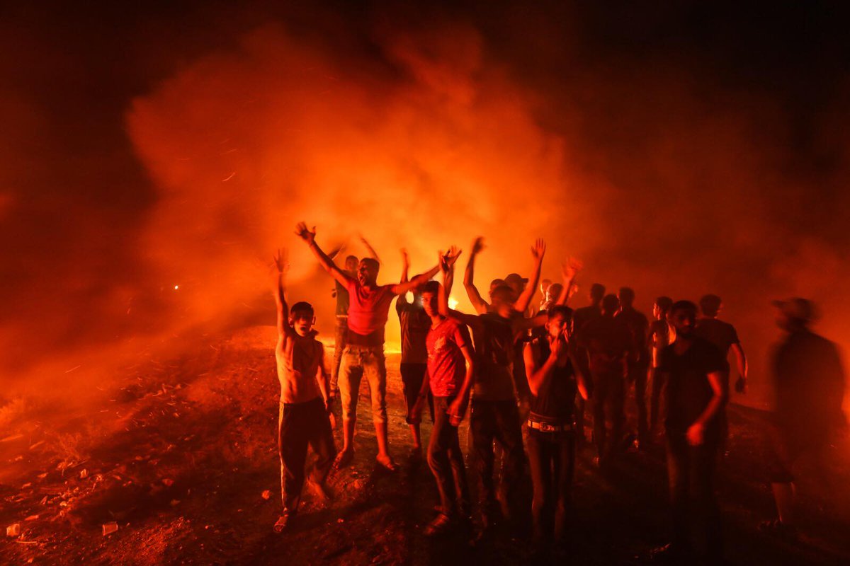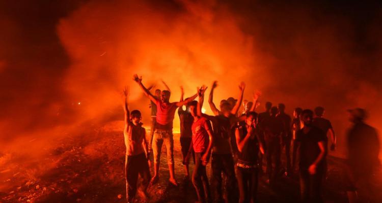 Dozens of unarmed Palestinian rallied around the Awda (return) camps near Gaza’s eastern borders as part of the night protests staged by Gazans to speak up for the refugees’ right of return to their homeland from which they were expelled by the Israeli occupation more than 60 years ago
