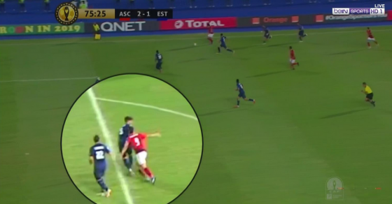 - الكارثة التحكيمية كانت في احتساب ركلة الجزاء الثالثة، إذ تأخر الحكم ثانيتين لاحتساب ركلة الجزاء التي كانت -وفقا للشريف- عبارة عن خطأ خارج منطقة الجزاء، والمثير في القرار أن المهاجم أزارو التي احتسبت له ركلة الجزاء كان يجب أن يُطرد مباشرة لأنه اعتدى بالضرب على مدافع الترجي التونسي، أي أن الحالة ليست ركلة جزاء، وفيها طرد لمهاجم الأهلي.