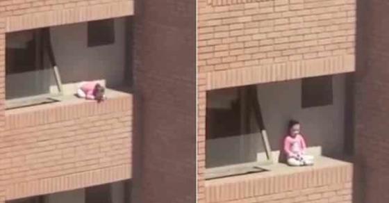 غالبا ما نسمع عن إنقاذ أشخاص عن شرفات شقق في بنايات عالية، وفي بعض الأحيان نسمع إما عن حالات سقوط أو انتحار، لكن مشاهدة هذه الطفلة يمكن أن يقول بأنه "غير".