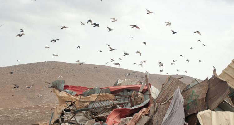 The doves, Bisharat explained, had been raised by his family. Their pen – with baby doves inside it – had been demolished along with the other structures and the birds were now circling their old home. The family’s sheep, too, were homeless.