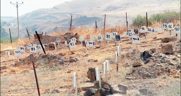 1. The cemetery of the numbers adjacent to the "Girls of Jacob" Bridge, located in a military zone, at the confluence of the Israeli-Syrian-Lebanese border. According to some sources, there are approximately 500 graves in it for Palestinian and Lebanese martyrs, most of them who were killed in the 1982 war.