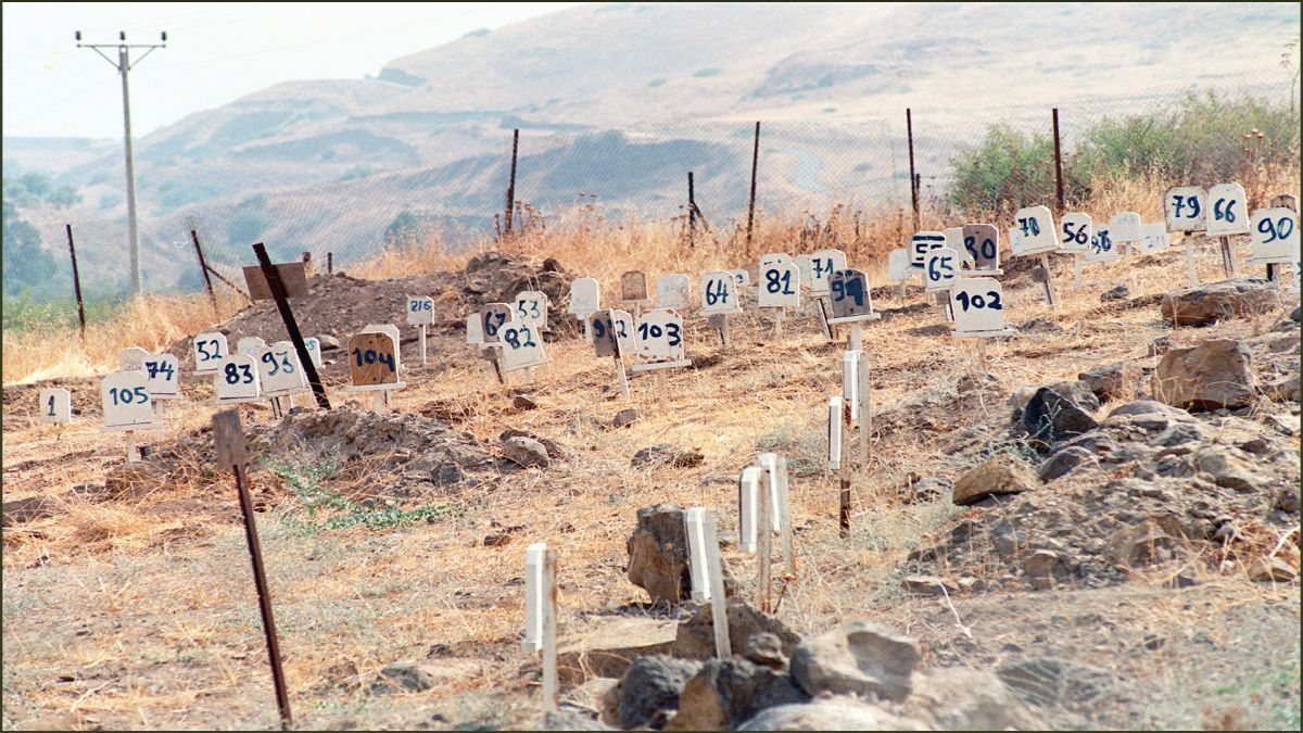 2. The cemetery of the figures located in the closed military area between the city of Jericho and a bloody bridge in the Jordan Valley. It is surrounded by a wall with an iron gate. A large sign reads: "Cemetery for the victims of the enemy." There are more than 100 graves. Figures from "5003 - 5107". These figures are likely to be serial to tombs in other tombs. However, Israel claims that they are mere signs and administrative symbols that do not reflect the actual number of bodies held in other graves.
