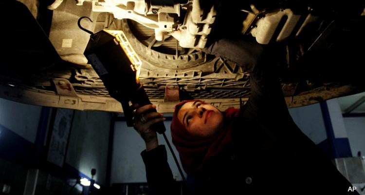 Top Photo | Palestinian auto mechanic Nagham Dweikat checks the bottom of a vehicle at a repair shop in the West Bank city of Nablus, Saturday, March 8, 2014. A new RAND study shows huge potential economic benefits to both Israel and Palestine if the two countries find peace.