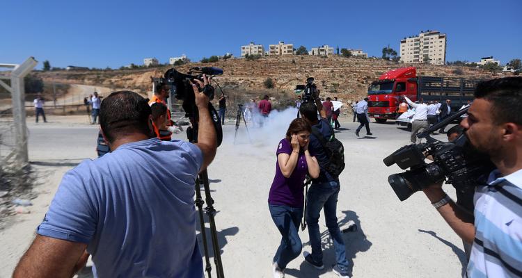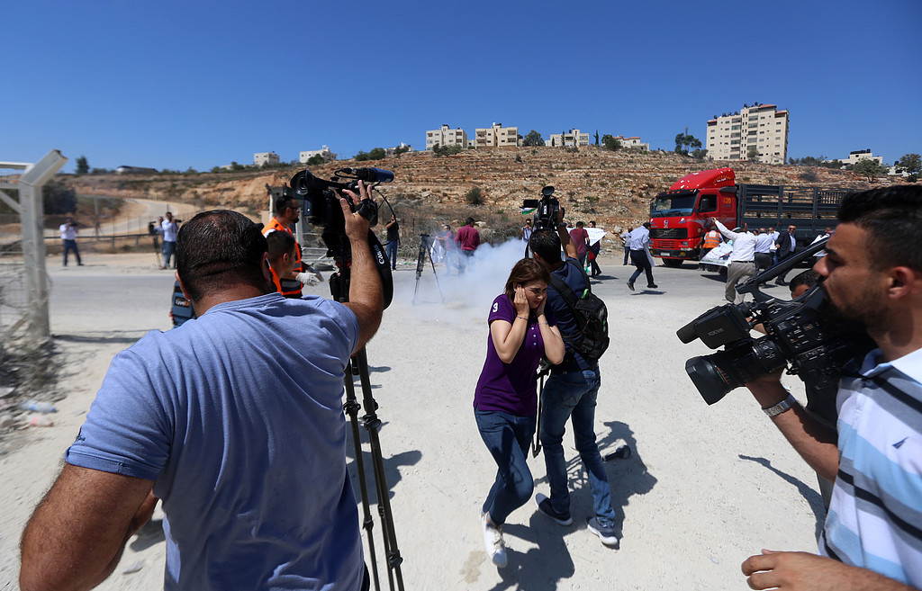 Several Palestinians suffocated from tear gas inhalation as Israeli forces suppressed the demonstration of a crowd who gathered in front of Ofer prison, in solidarity with prominent Palestinian human rights activist Abdullah Abu Rahmeh.