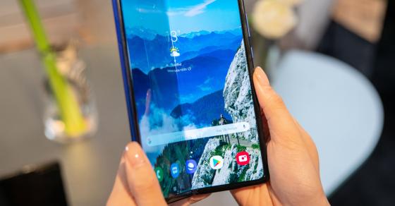 ويتميز الهاتف الجديد بأول شاشة عرض على مستوى العالم قابلة للطي، إذ يمكن طيها لتصبح على شكل جهاز صغير الحجم مع شاشة عرض.