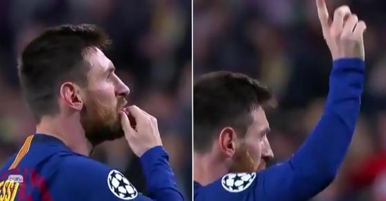 تحية وطلب وجههما النجم الأرجنتيني ليونيل ميسي قائد برشلونة إلى جماهير فريقه خلال احتفاله بتسجيله هدفه الثاني للبرسا في مرمى ضيفه ليفربول بالمباراة التي انتهت أمس الأربعاء بفوز أصحاب الأرض بثلاثية نظيفة بذهاب نصف نهائي دوري الأبطال.