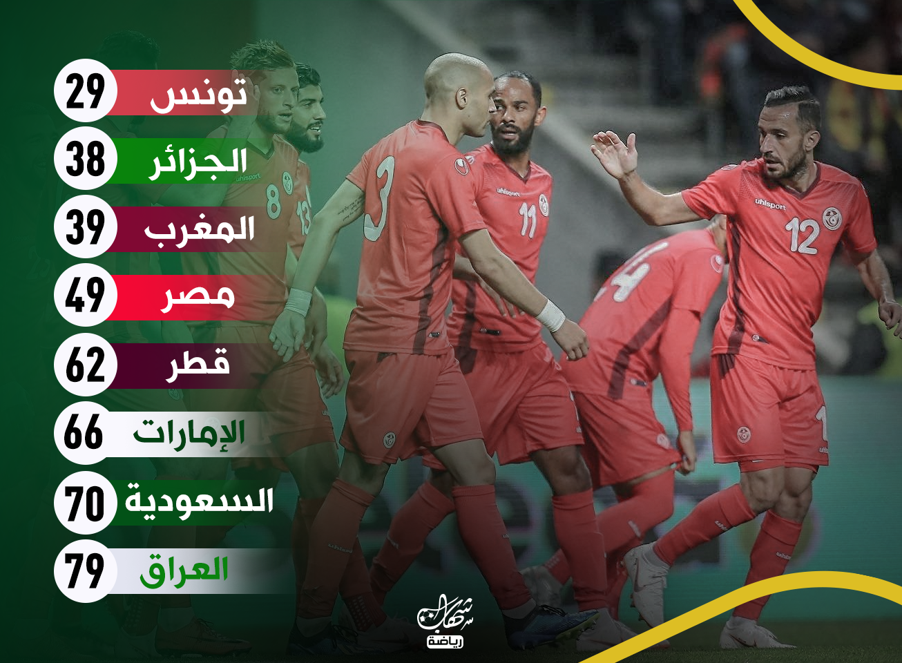 وجاء ترتيب المنتخبات الخمسة الأولى على مستوى القارة الإفريقية، السنغال في الصدارة (20 عالميا)، وتونس (29 عالميا)، ثم نيجيريا (34 عالميا)، فالجزائر (38 عالميا)، وأخيرا المغرب (39 عالميا).