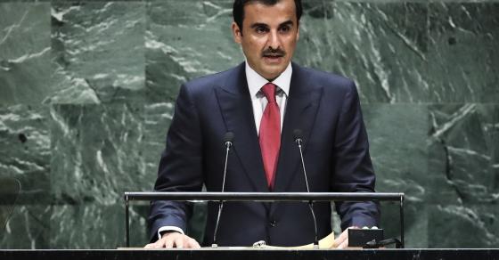 وقال تميم خلال كلمته أمام الجمعية العامة للأمم المتحدة ، "إن ممارسات الاحتلال غير المشروعة المترتبة على ذلك، ولا سيما توسيع الاستيطان وتهويد القدس والحصار الخانق والجائر لقطاع غزة وتكثيف الاستيطان لهضبة الجولان السورية المحتلة تعتبر تحدٍ علني للقرارات الأممية".