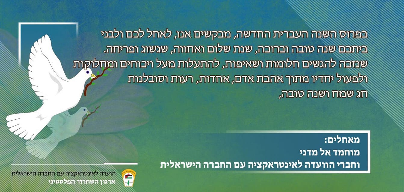 انتشرت على صفحات التواصل الاجتماعي، مباركة بالسنة العبرية الجديدة من القيادي الفتحاوي محمد المدني وأعضاء "لجنة التحدث مع المجتمع الإسرائيلي".