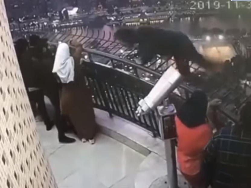 وأظهر مقطع الفيديو، طالب هندسة حلوان، وهو يلقي بنفسه من أعلى برج القاهرة، وسط ذهول وذعر زوار البرج.