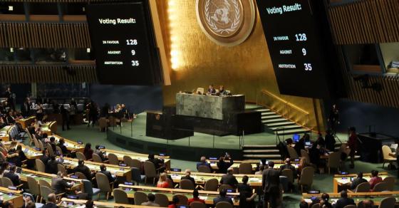 تبنت الجمعية العامة للأمم المتحدة، مساء الثلاثاء، 5 قرارات مناهضة الاحتلال الإسرائيلي، أبرزها مطالبتها بمغادرة مرتفعات الجولان المحتلة إلى الحدود المتفق عليها عام 1967.