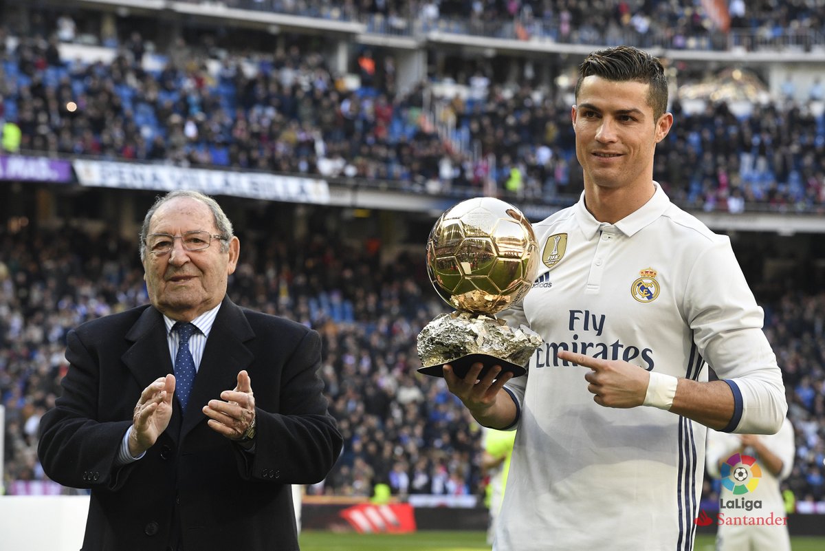 وكان رونالدو فاز بجائزة الكرة الذهبية المقدمة من مجلة "فرانس فوتبول" الفرنسية الرياضية إلى أفضل لاعب في العالم 2016، لتكون المرة الرابعة التي يفوز فيها بهذه الجائزة.