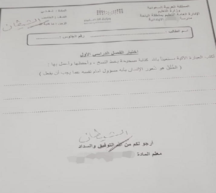 وقام بتصوير الأسئلة بعد شطب عبارة "الله" وكتابة "الشيطان" بدلا منها في بداية ونهاية الورقة، وتوزيعها على الطلاب في قاعة الاختبار، في وجود أحد المشرفين التربويين بالمدرسة، بحسب صحيفة "سبق" السعودية.