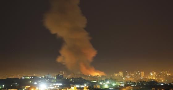 وأفاد مراسل شهاب، بأن الطيران المروحي استهدف محيط موقع فلسطين التابع لكتائب القسام شمال قطاع غزة بعدة صواريخ.