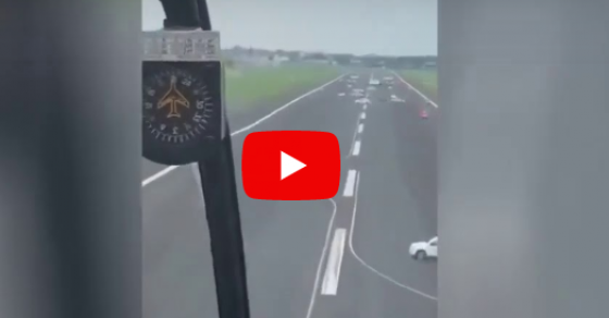 وتظهر لقطات أخذت من طائرة مروحية المدرج، حيث تنتشر على طوله مركبات تابعة للشرطة المحلية وإدارة المرور.