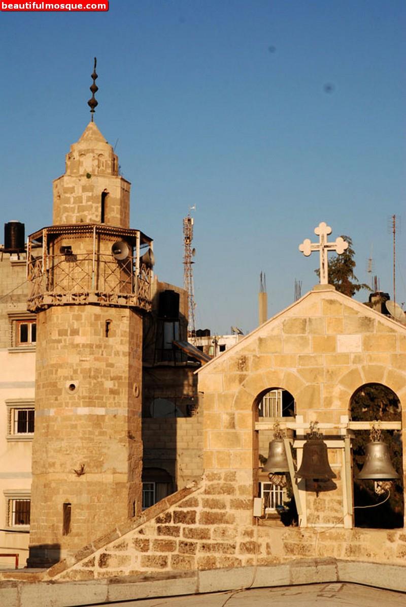 يعد من أقدم مساجد غزة، ويقع وسط مدينة “غزة القديمة” وتبلغ مساحته 4100 متر مربع، ومساحة فنائه 1190 مترًا مربعًا، ويحمل 38 عامودًا من الرخام ببنيانه المتين والجميل.