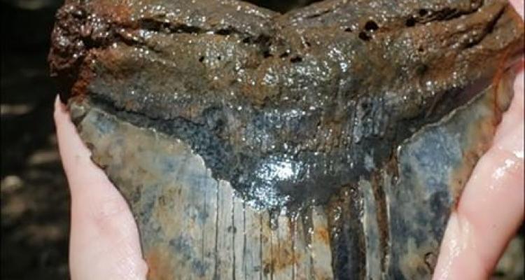 اكتشفت امرأة أمريكية سنا لسمكة قرش ضخمة من نوع "ميغالودون" بحجم يد الإنسان.