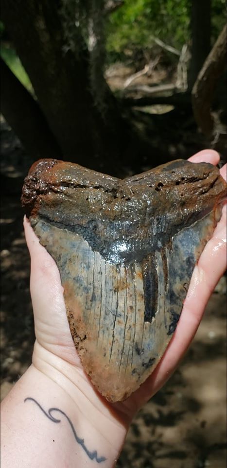 وقالت جيسيكا روز ستاندافر أوينز، من ولاية كارولاينا الجنوبية، إنها لاحظت بروز جزء من السن الرمادي اللون من الضفة الواقعة بالقرب من نهر ستونو القريب من تشارلستون.