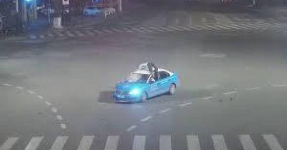 واظهر الفيديو اصطدام دراجة نارية باحدى السيارات، ليجد سائق الدراجة نفسه مستقرا فوق سطح السيارة.