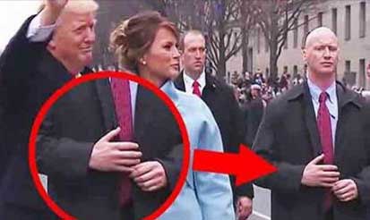 فعلى الرغم من الحراسات الكبيرة التي كانت موجودة برفقة ترامب، إلا أن أحد حراسه ظهر وهو يسير خلفه وممسكاً بيديه ولا يحركهما نهائياً في منظر غريب، وعند التدقيق في الصورة لوحظ أن يديه ليستا حقيقيتين، بل صناعية، بينما يديه الحقيقية كانت تحت المعطف في حالة استعداد، وربما على الزناد أيضا، تحسباً لأي لحظة.