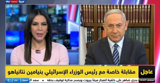 استضافت قناة "سكاي نيوز عربية" التي تبث من الإمارات، اليوم الإثنين، رئيس حكومة الاحتلال الإسرائيلي، بنيامين نتنياهو، في أو لقاء تلفزيوني له مع قناة عربية مٌنح خلالها فرصة الترويج للتحالف الإسرائيلي الإماراتي.