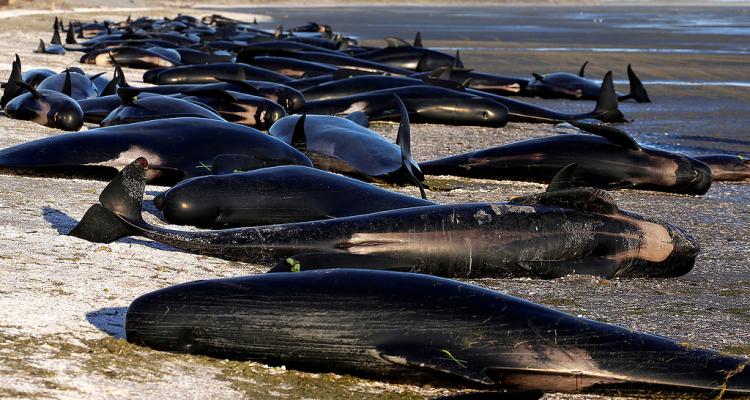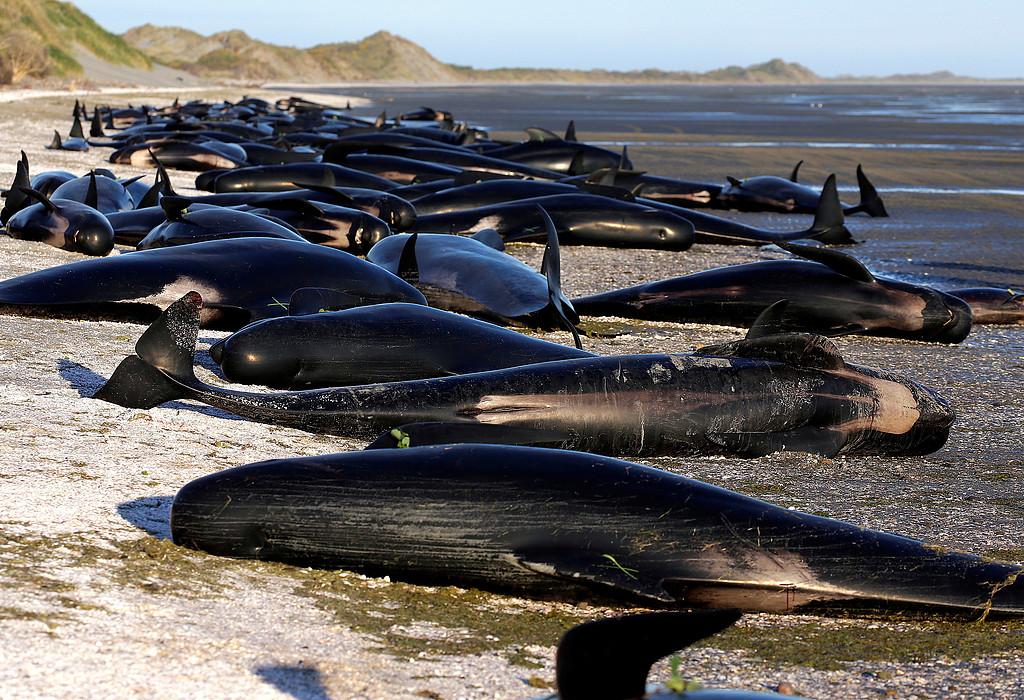 بالصور انتحار جماعي لمئات الحيتان في نيوزيلندا