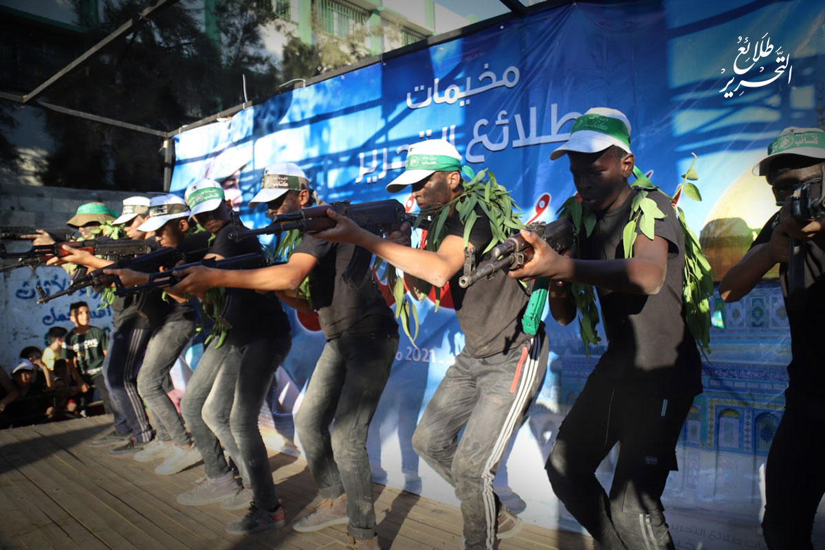 ومخيمات طلائع التحرير التي تنظمها كتائب القسام الجناح العسكري لحركة حماس للعام العاشر، انطلقت أواخر يونيو/ حزيران الماضي، بمشاركة آلاف الفتية، تحت شعار "سيف القدس".