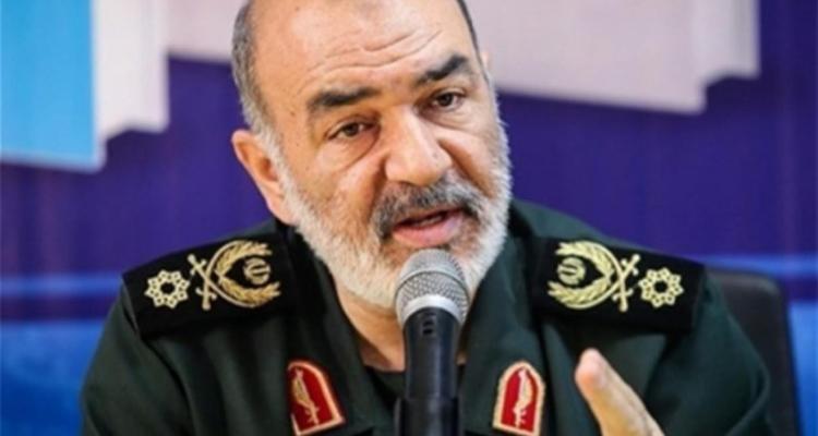 يلقي قائد حرس الثورة الإسلامية اللواء حسين سلامي كلمة بمناسبة يوم القدس العالمي، خلال مهرجان تنظمة اللجنة الفلسطينية ليوم القدس العالمي في غزة.